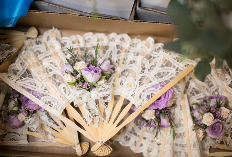 I was never huge on flowers and was committed to finding an alternative for my bridesmaids. I had a large bridal party, but it wasn’t just about spending the money on flowers. Okay, that was a big part. I’m a sentimental girl. I like things that last and that can be saved. Yes, you can dry out flowers, but I didn’t want an expensive bouquet to be tossed to the side after the ceremony. They can look beautiful and really soften things, but I wanted to do something a little different. Something vintage yet classic and unique. I asked my florist to add a small floral touch to fans I found online, and it came out perfect. They looked great! And, yes, my mom saved one of the fans and put it into a shadow box, which is currently displayed in our master bedroom.