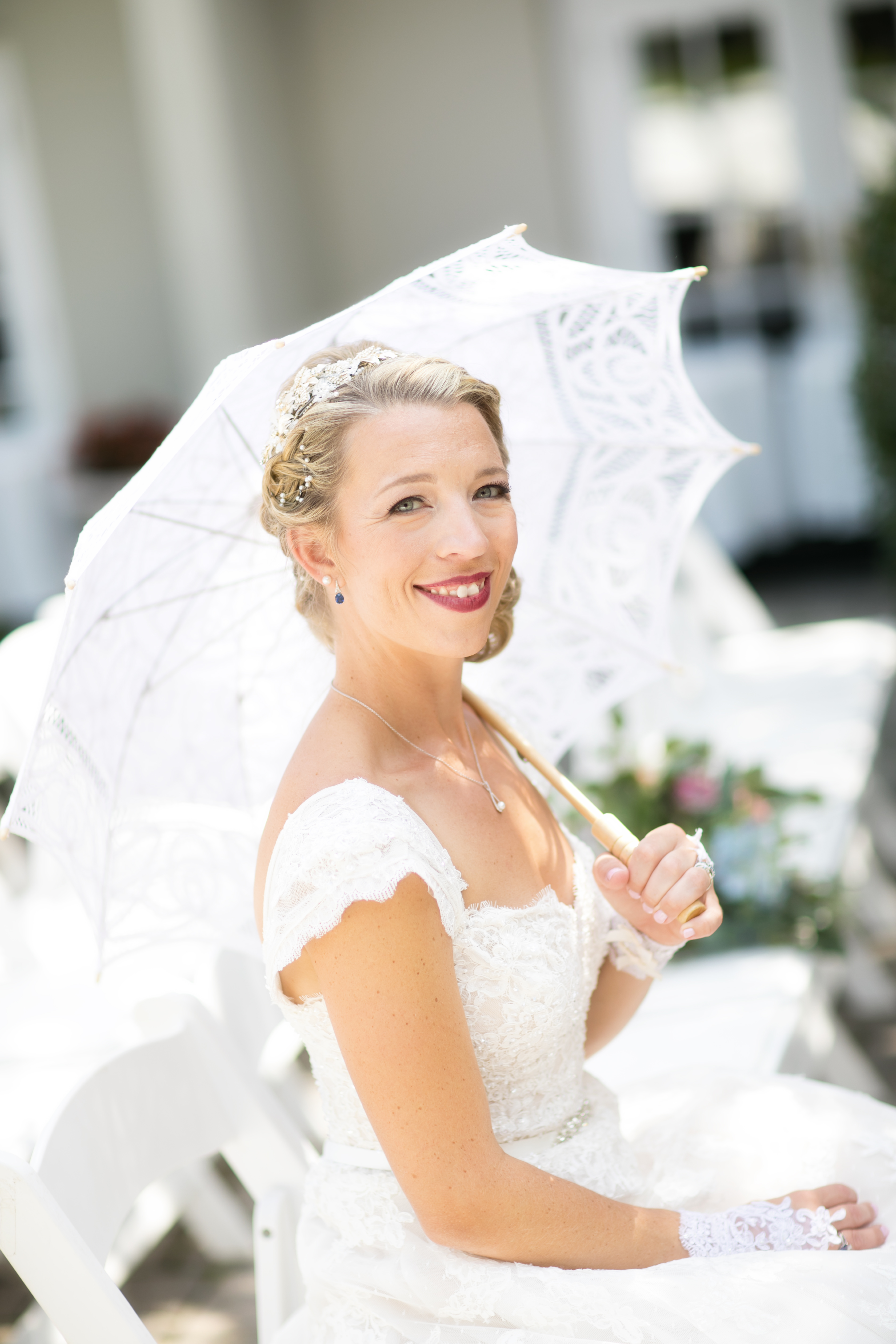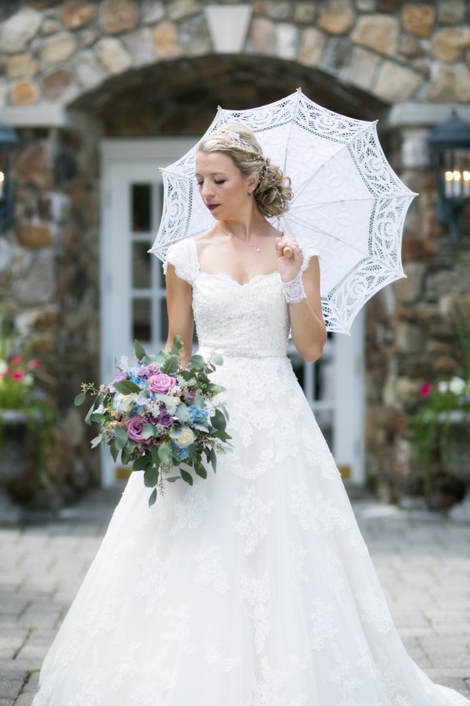 It turns out that my photographer and I had the same idea. I brought a floral umbrella to my wedding day thinking it would be a pretty accessory to add to our photo shoot. He brought a lace umbrella, which he always carried around, because it was a classic look and photographed really well. I loved his more, and am so happy he and I were on the same page about this accessory!